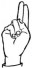 На ћирилици написано БУДИМИР ПЕРОВ састоји се из 12 слова [?]. Исписано ћириличном једноручном азбуком за глувонеме:
